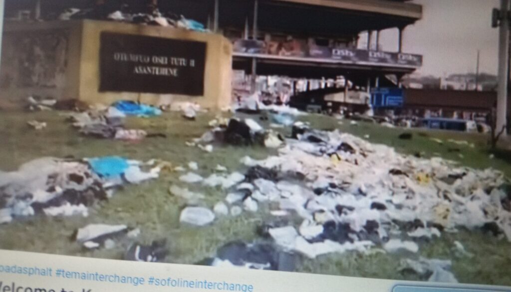 KSI Kejetia: WHAT AN INSULT! HEAP OF RUBBISH UNDER OTUMFUO’S STATUE.